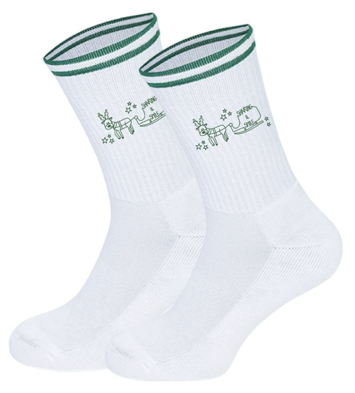 Discover our 2025 Christmas Socks, these come in two sizes (37-41) and (42-46). They feature an elegant white based with a dark green winter design, perfect for gifting or keeping for yourself.